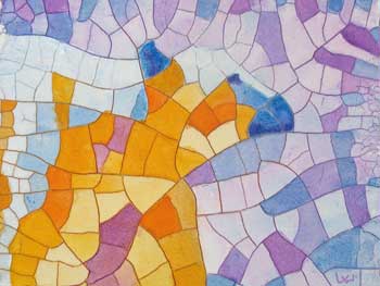 Sometimes, you just have to let go and see where a piece of artwork is going to take you. I had no say in how the paste was going to crack, so the compositional decisions were entirely out of my hands. That just freed Right Brain up to find the forms, go with the flow, and have a blast with color. I like this piece, if nothing else but for the pure fun I had during it's creation.